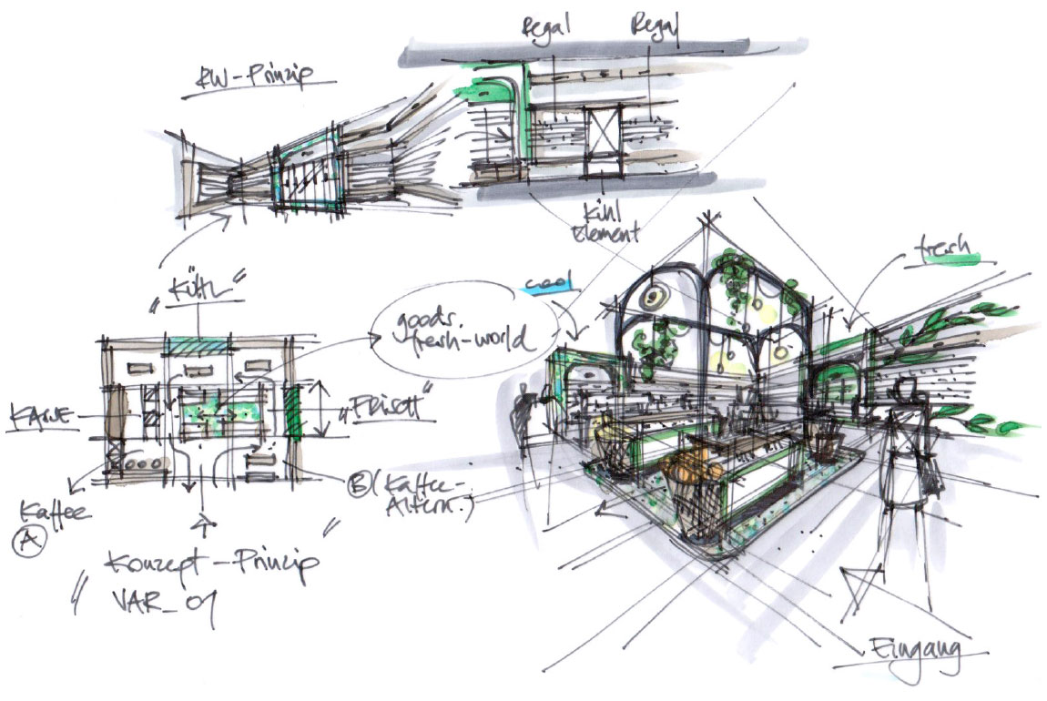 gooods. heisst: bequemes Einkaufen frischer Sofortware in kurzer Zeit. An Bahnhöfen, Tankstellen oder in der Innenstadt sollen deshalb komplett einzigartige Stores entstehen. Dafür traut sich gooods., neue Wege zu gehen – zum Beispiel mit Sitzecken in jedem Laden.